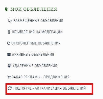 Также вы можите воспользоваться раз в 32 дней бесплатной функцией "Поднятие - Актуализация Объявления"